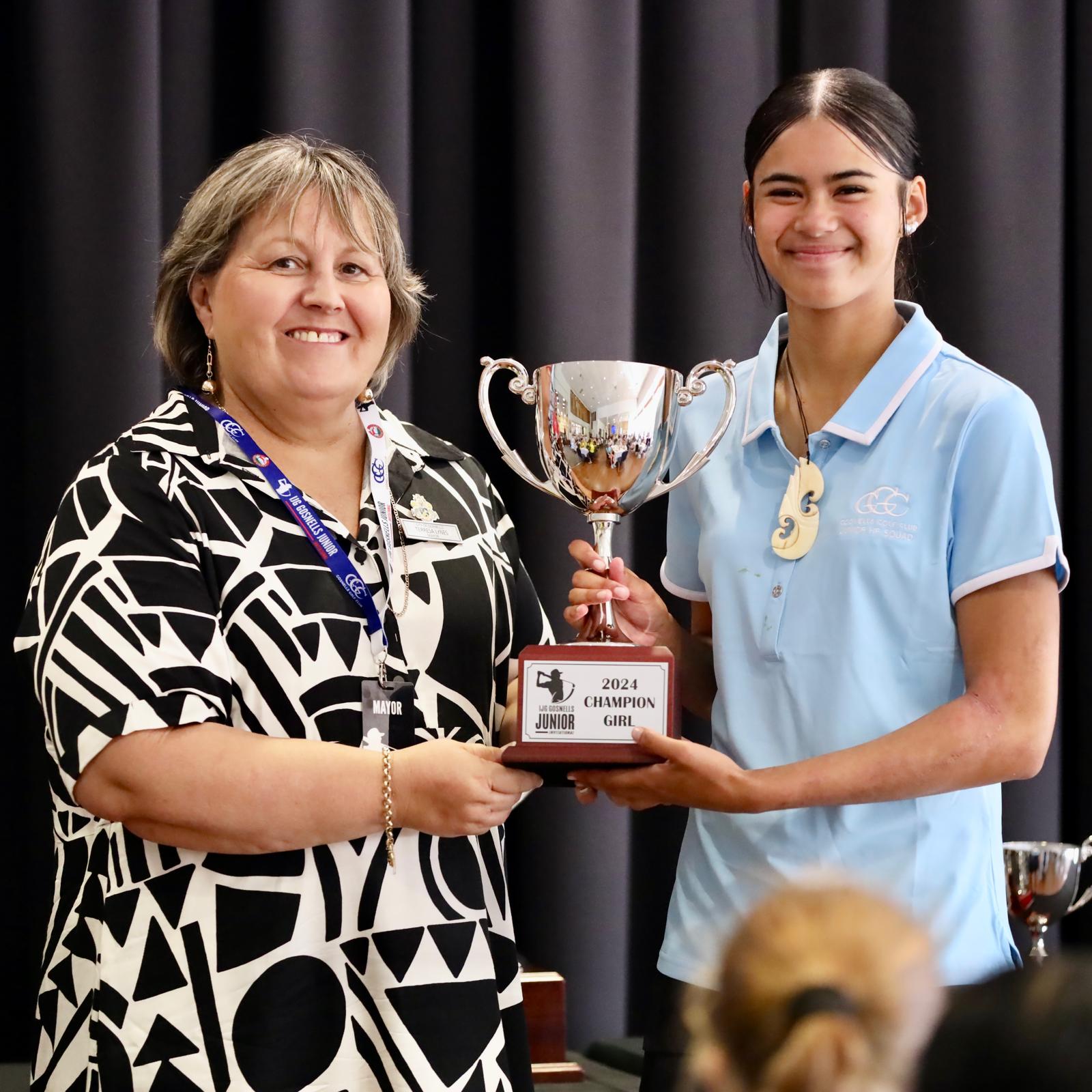 - Mayor Terresa Lynes with Girls Champion Halia Edwards