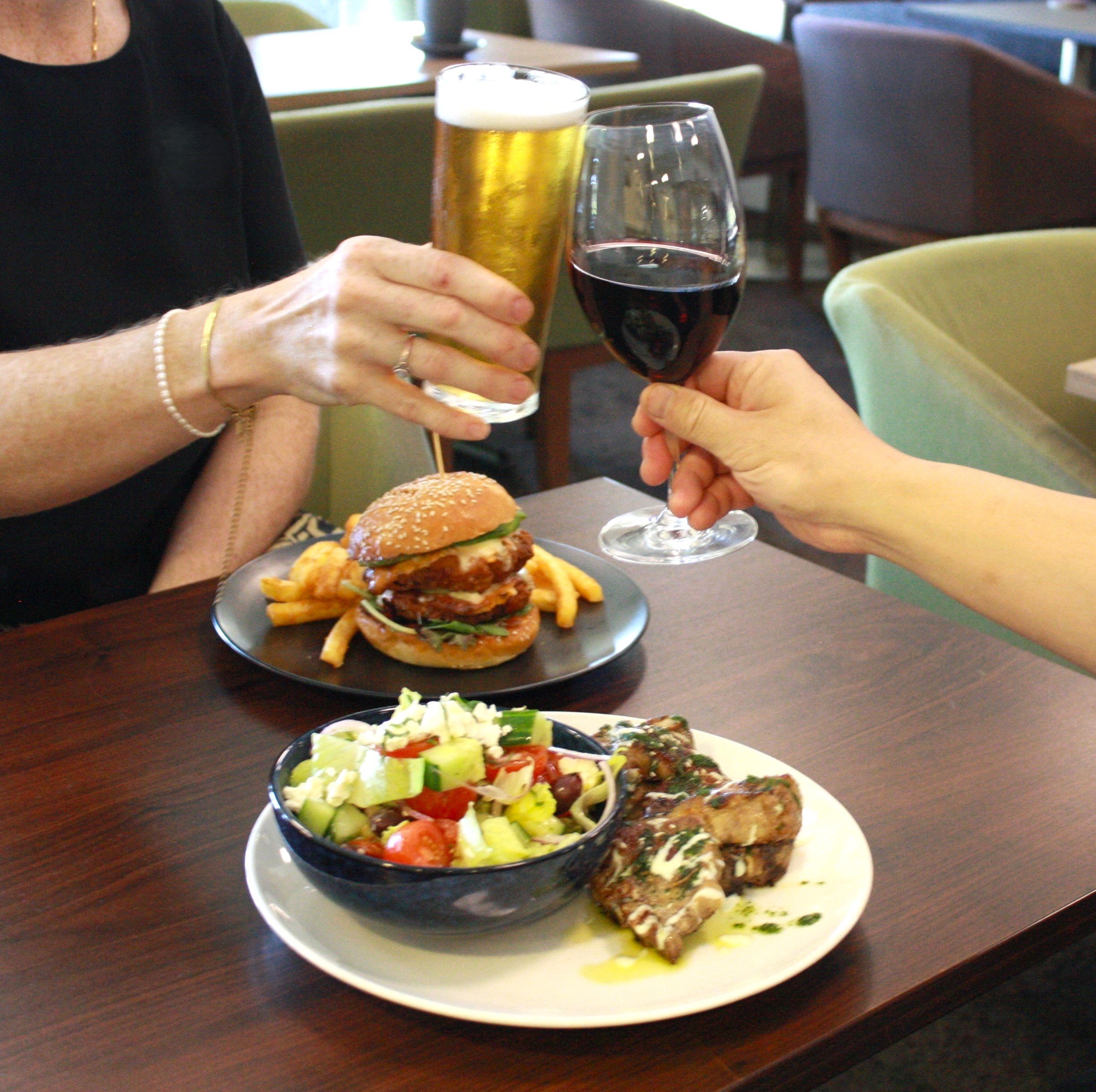 Cheers to a fresh updated menu. Come down to the club for lunch and enjoy one of many new delicious items such as our Southern Chicken Burger, Crab Spaghetti, Mushroom Pizza and Thai Fish Cakes.