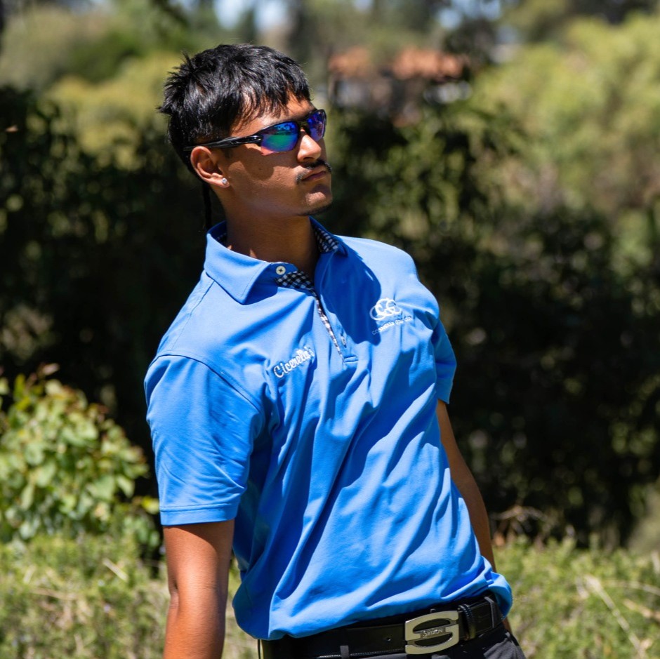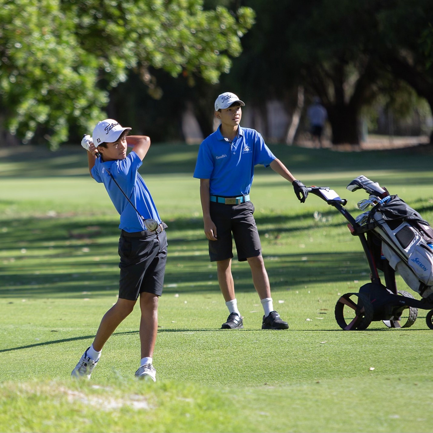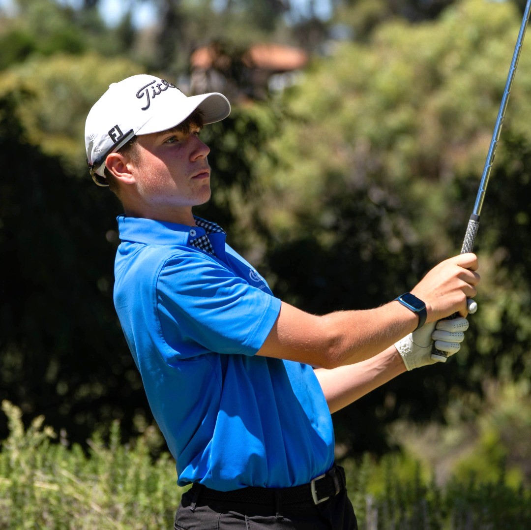 - Connor Pearson teeing off for Division 1 boys