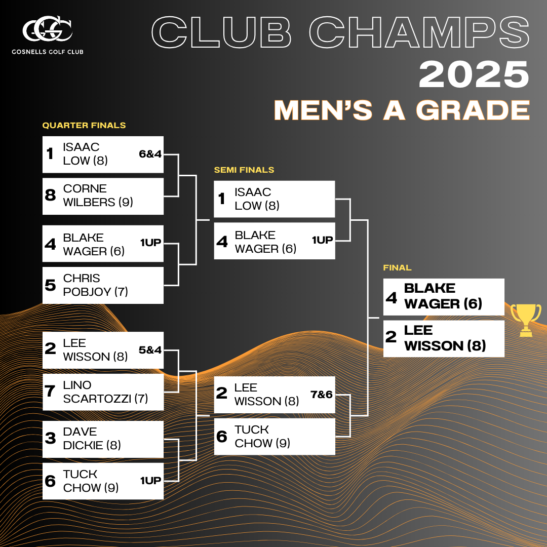 - Men’s A Grade 18 hole Final: Lee Wisson vs Blake Wager
