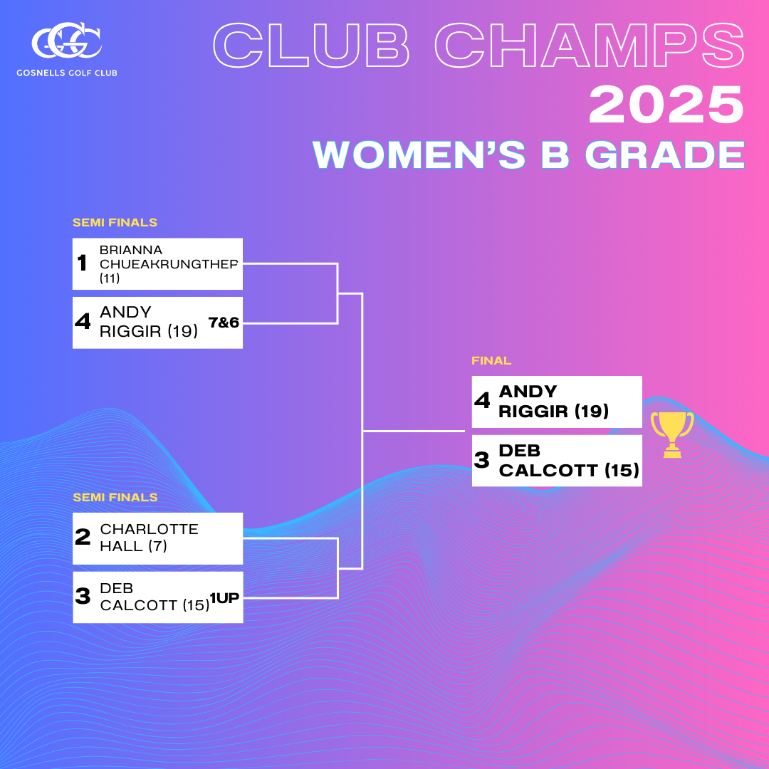 - Women’s B Grade 18 hole Final: Deb Callcott vs Andy Riggir