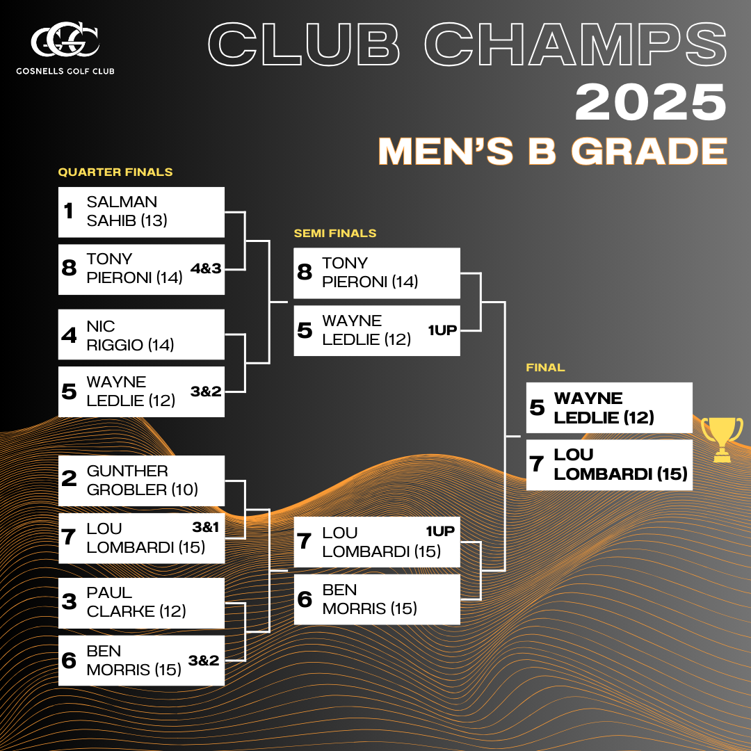 - Men’s B Grade 18 hole Final: Wayne Ledlie vs Lou Lombardi